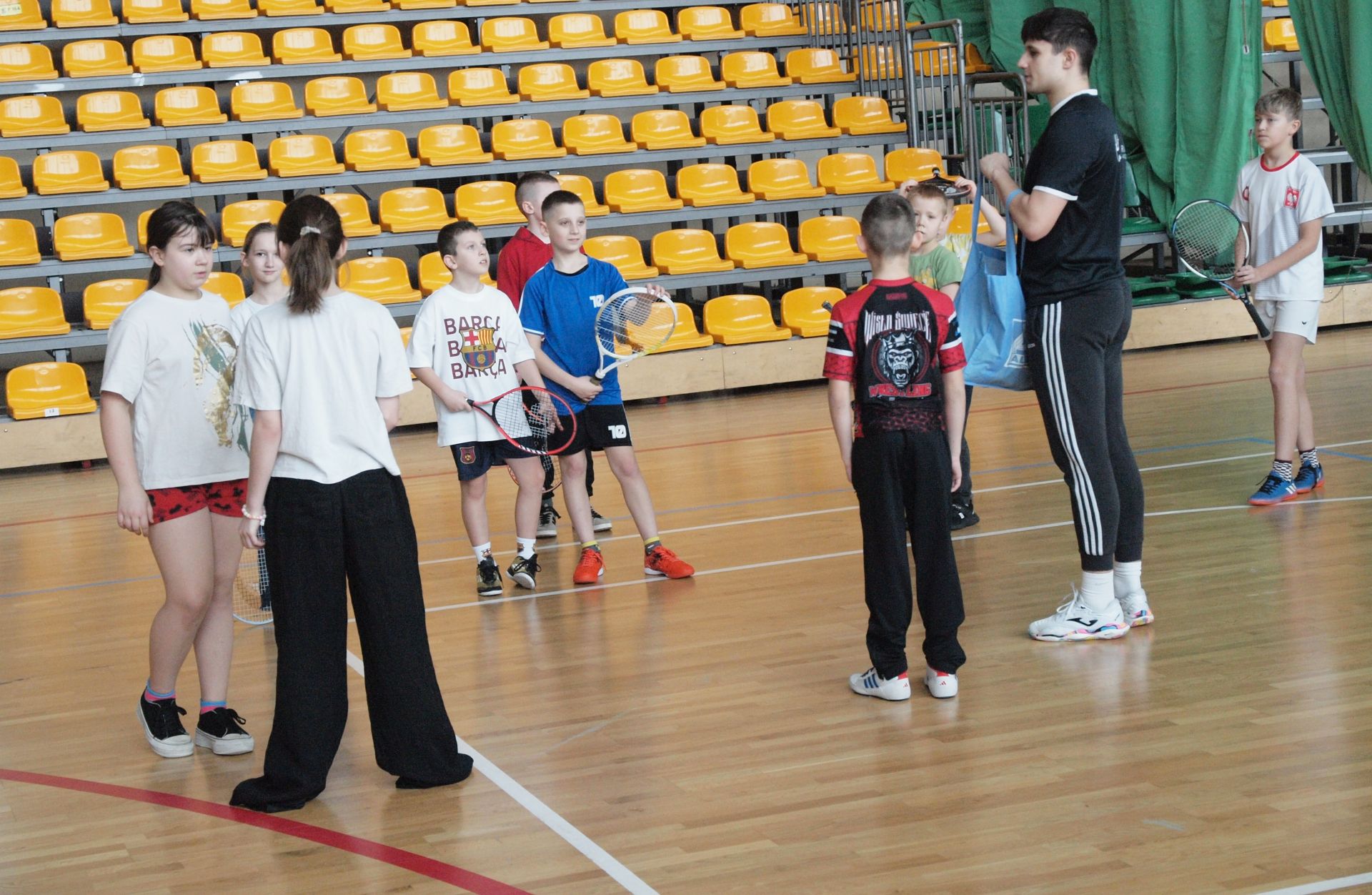 „Ferie na sportowo” organizuje Centrum Sportu i Rekreacji w Świeciu. Dwugodzinne zajęcia zaplanowane są do czwartku włącznie w godz. 11.30-13.30. Podobnie jak w poprzednich latach dzieci będą poznawać różne dyscypliny sportowe. Poniedziałkowe zajęcia rozpoczęły się od rozgrzewki z Przemysławem Dolnym, koszykarzem ŚKK Świecie. Dzieci mogły się też sprawdzić w przygotowanym przez niego małym torze z zadaniami do wykonania (m.in. bieg slalomem, drabinka, rzuty piłką do kosza, brzuszki na materacu). Później jedna grupa miała zajęcia z tenisa ziemnego, a druga z karate shorin-ryu. Po 40 minutach nastąpiła zamiana. Prowadzili je instruktor tenisa Jan Kądziorski oraz trener karate Dariusz Draspa ze Świeckiego Klubu Karate Shorin-Ryu i Jiu Jitsu. Jutro kolejne dyscypliny, zapraszamy wszystkie chętne dzieci. Wymagany jest strój sportowy, woda do picia oraz dobry humor.